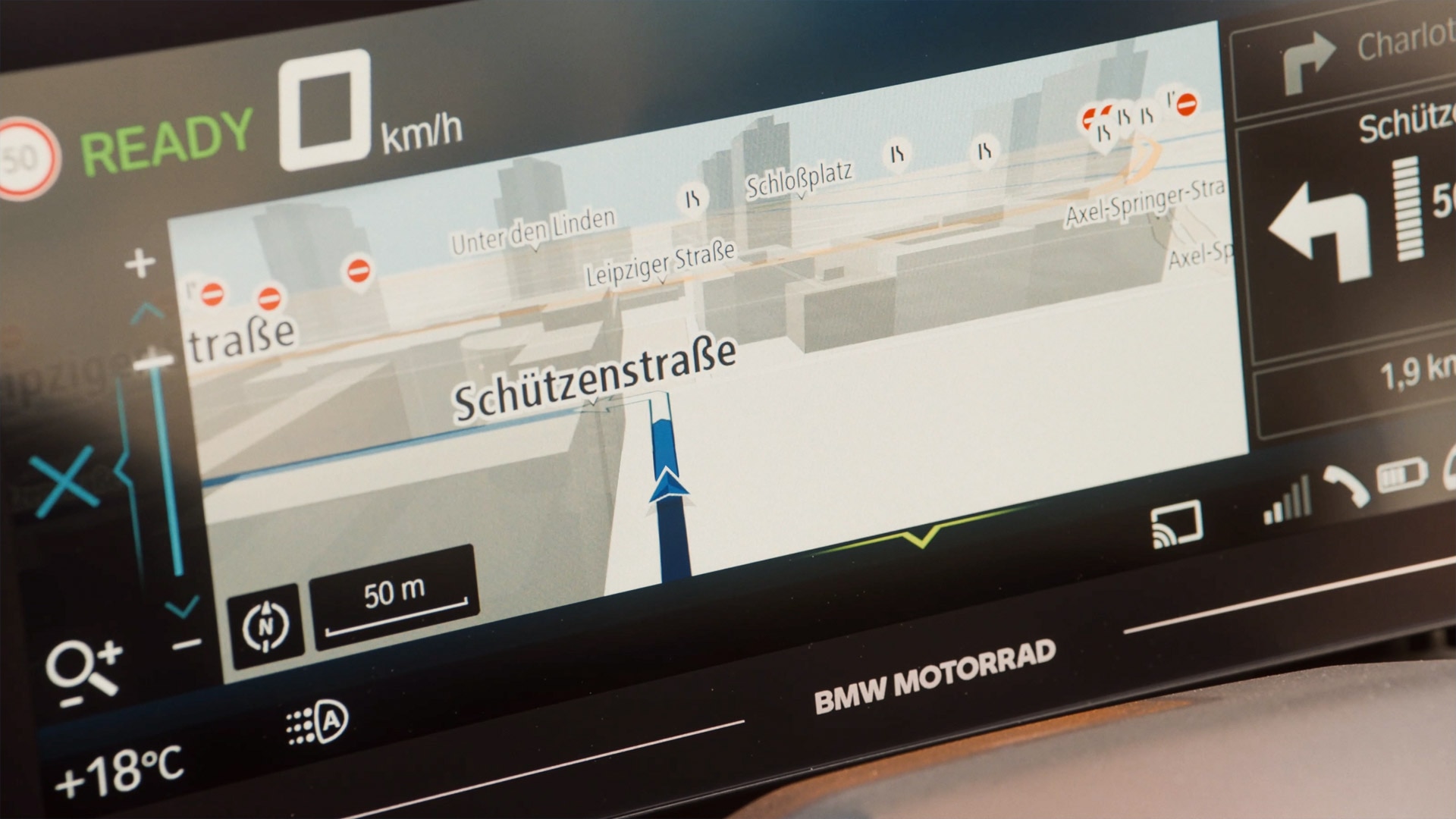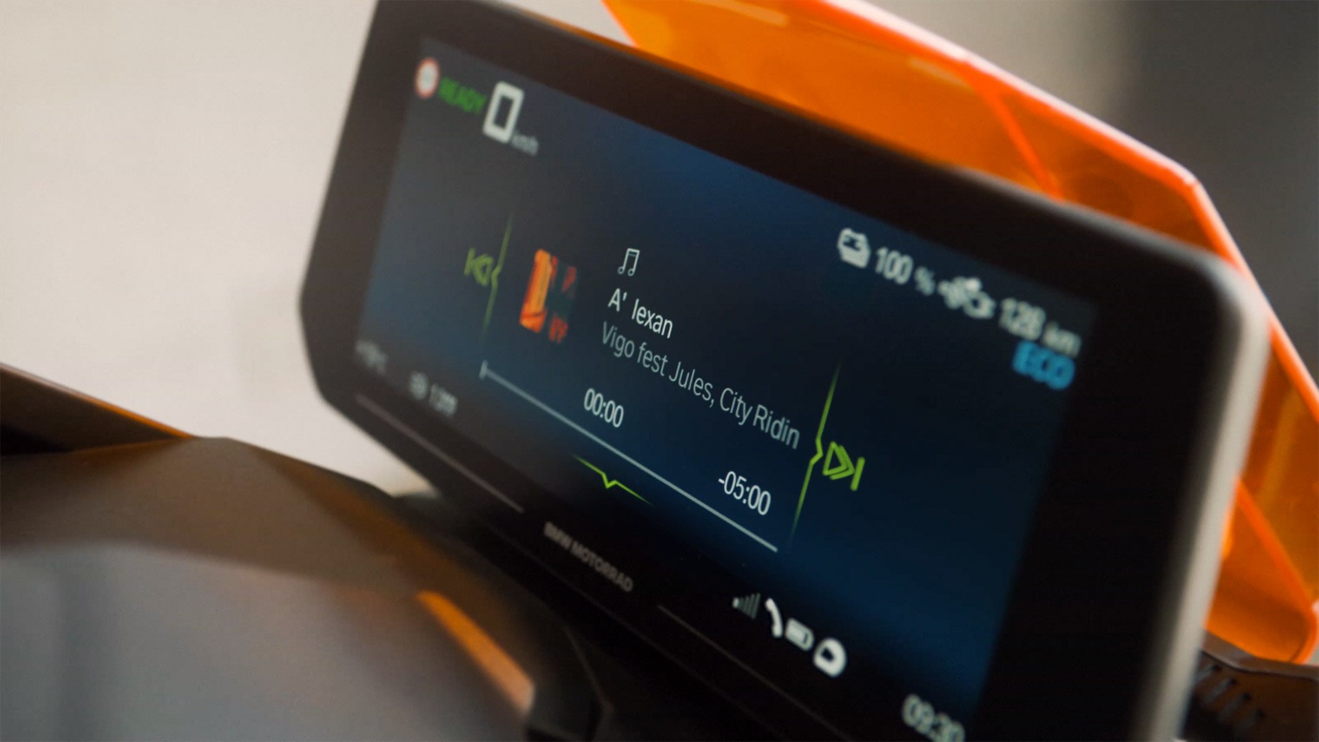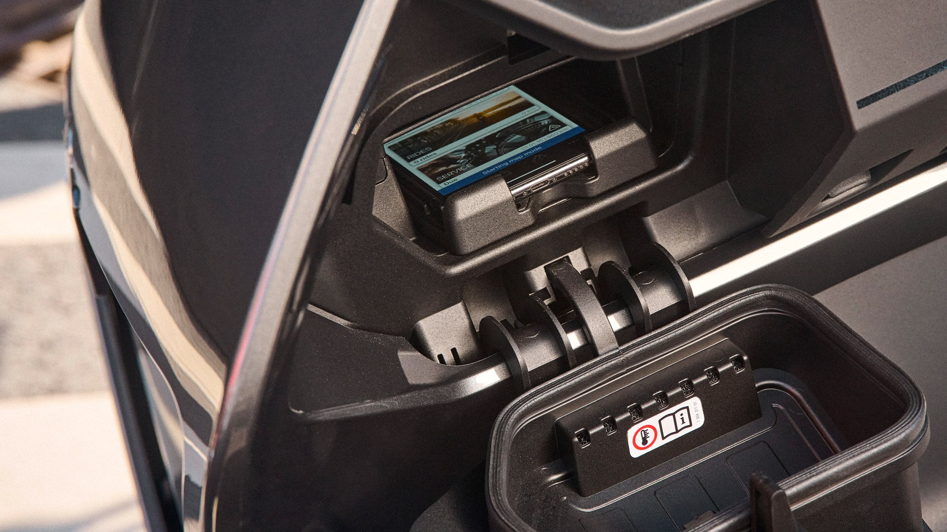 Don't overlook or miss anything and enjoy everything. Thanks to BMW Motorrad Connectivity and the BMW Motorrad Connected app the BMW CE 04 makes new connections. The 10.25” TFT display featuring split screen option turns into the interface between the digital and analogue world. Be it performance data, range, charging time, the favourite playlist, next destination or a phone call: Mobility and communication merge into one. Quite simply your everyday life. Your smartphone can just stay in the watertight and ventilated storage compartment and it is also charged in the process thanks to a USB C connection.
